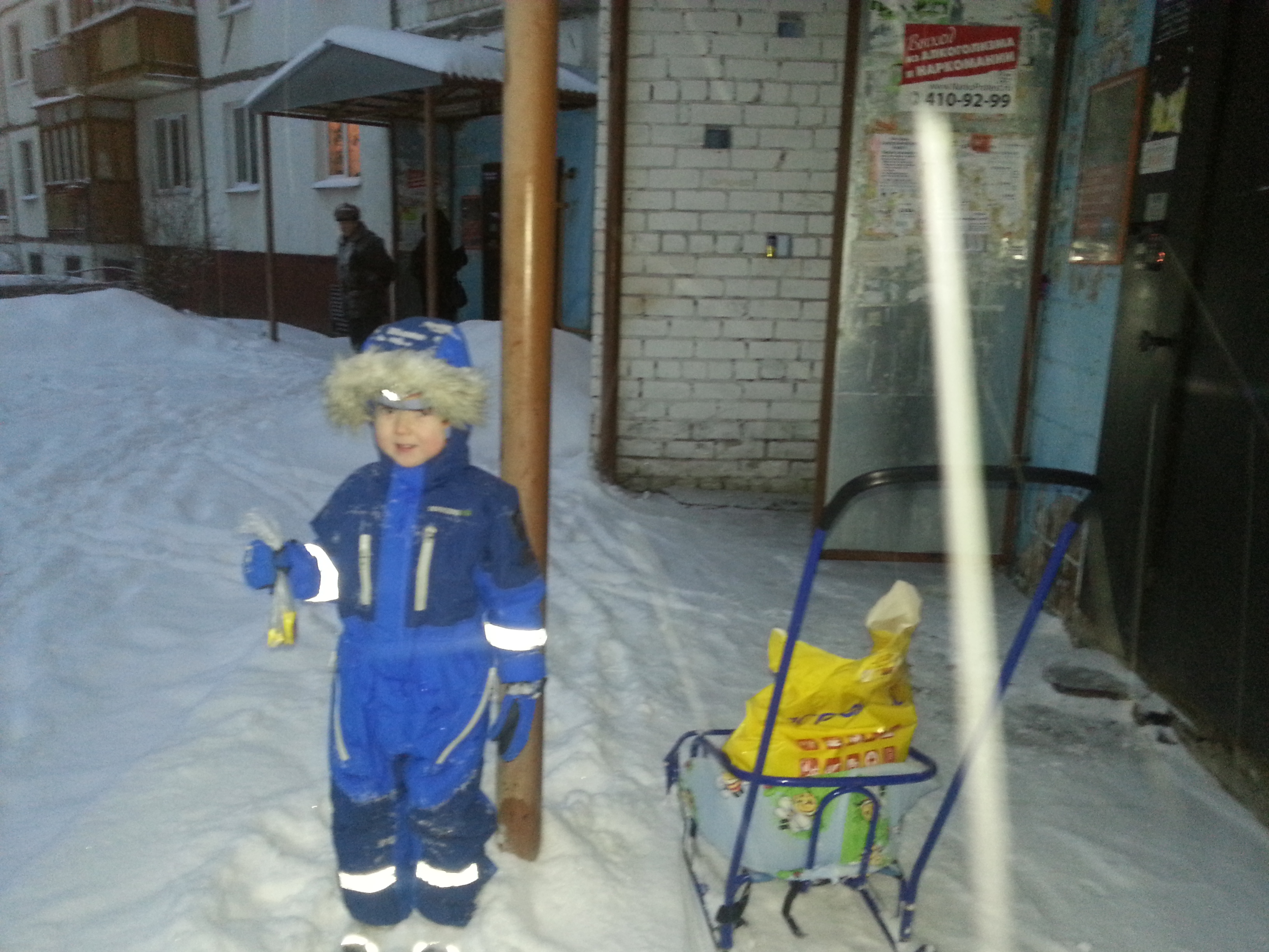 в руках пакетик с конфетками - оказывается утром забегала наша няня (сейчас она с нами не работает, но для меня она родной человек и саша для нее как внук)